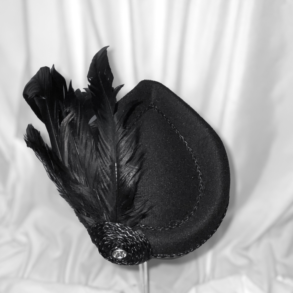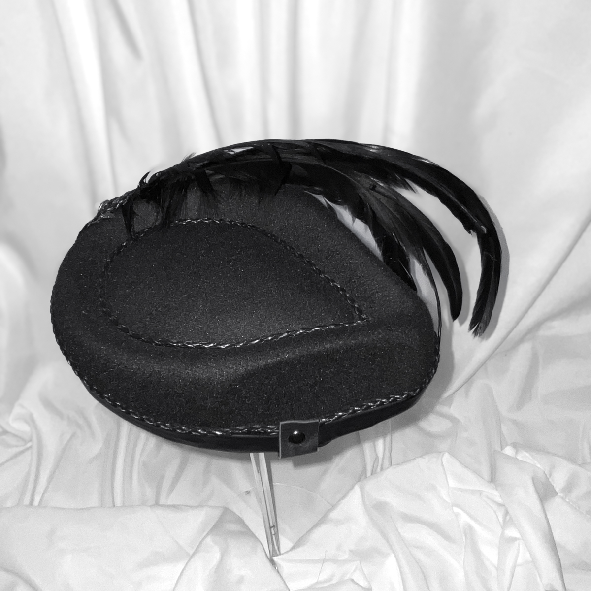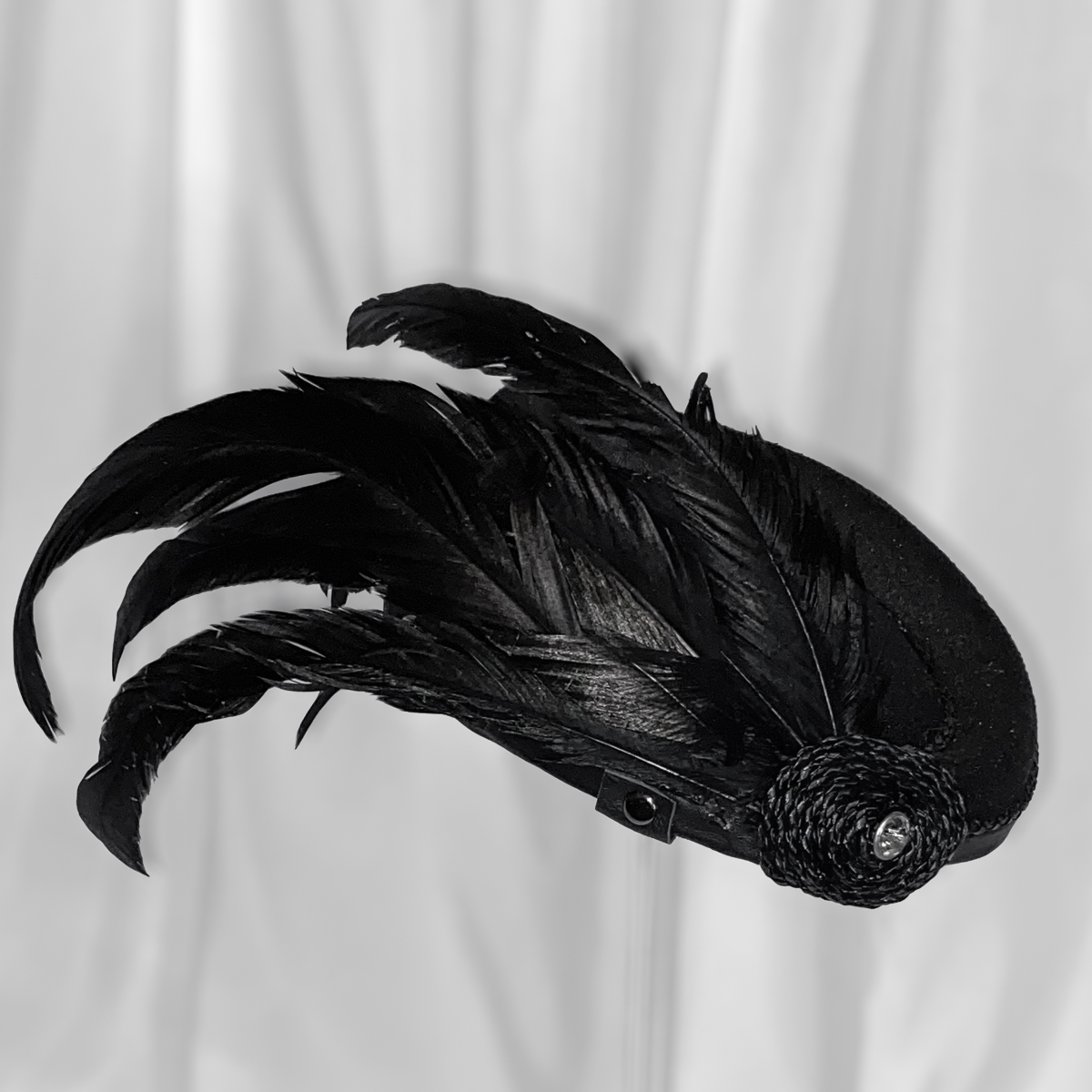 This black feather couture fascinator is a striking statement accessory crafted to command attention. The design features layered black feathers that fan outward with elegant movement, creating a bold silhouette that feels timeless yet fashion-forward.