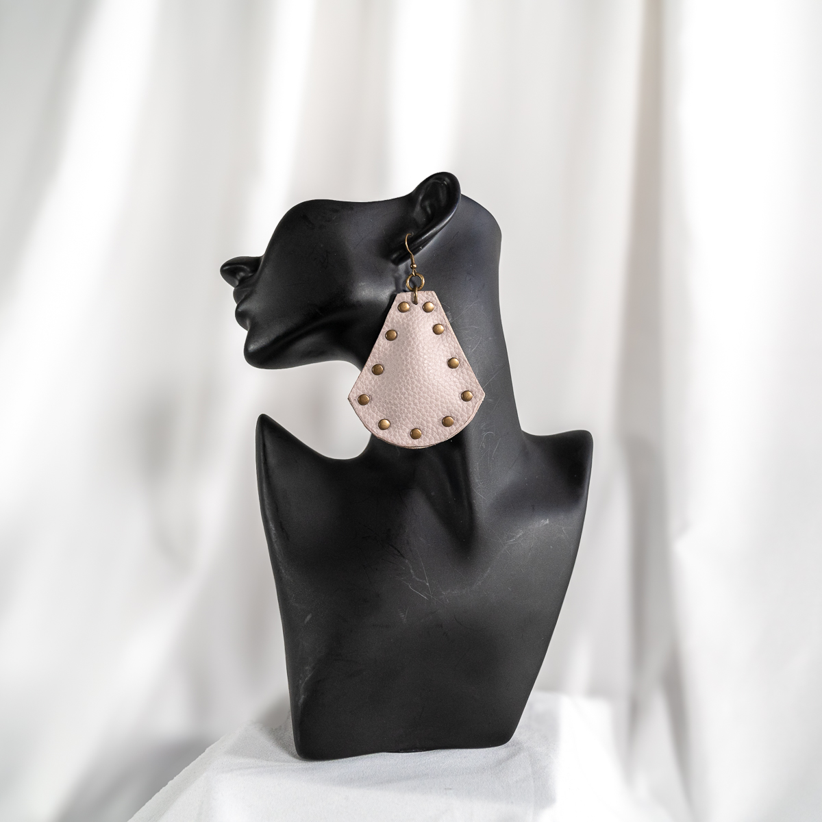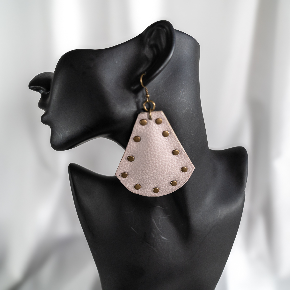 Designed to balance softness with edge, these statement drop earrings feature a blush-toned, pebbled leather-look silhouette shaped into a modern shield form. Warm gold-tone studs frame the edges, adding subtle shine without overpowering the design. Lightweight and comfortable, they’re perfect for elevating everyday outfits or complementing neutral, minimalist looks with just the right amount of texture and detail.