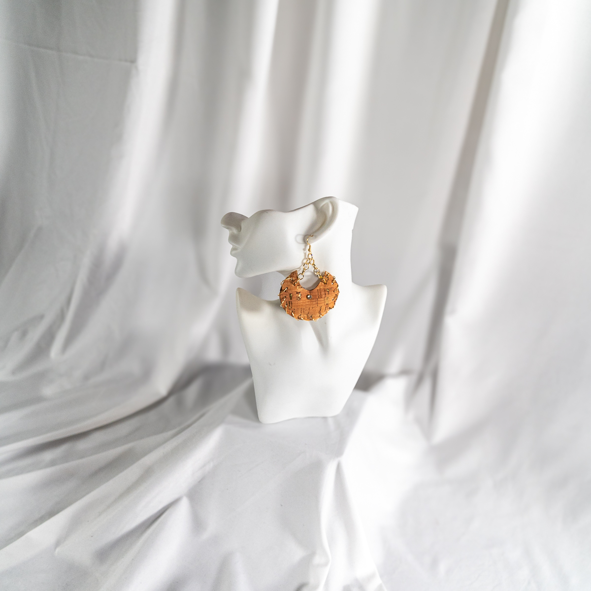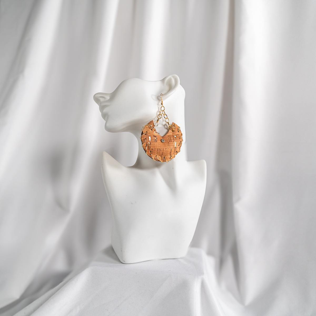 Bring a little rustic glam to your everyday style. These cork-look statement earrings feature a warm, natural cork tone kissed with metallic gold flecks for subtle sparkle in the light. The bold hoop silhouette is paired with delicate gold-tone chain links that add movement and a polished finish. Easy to dress up or down, they’re the perfect pop for denim days, brunch fits, and night-out looks—without the heavy feel.