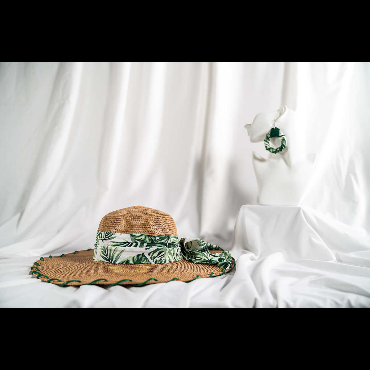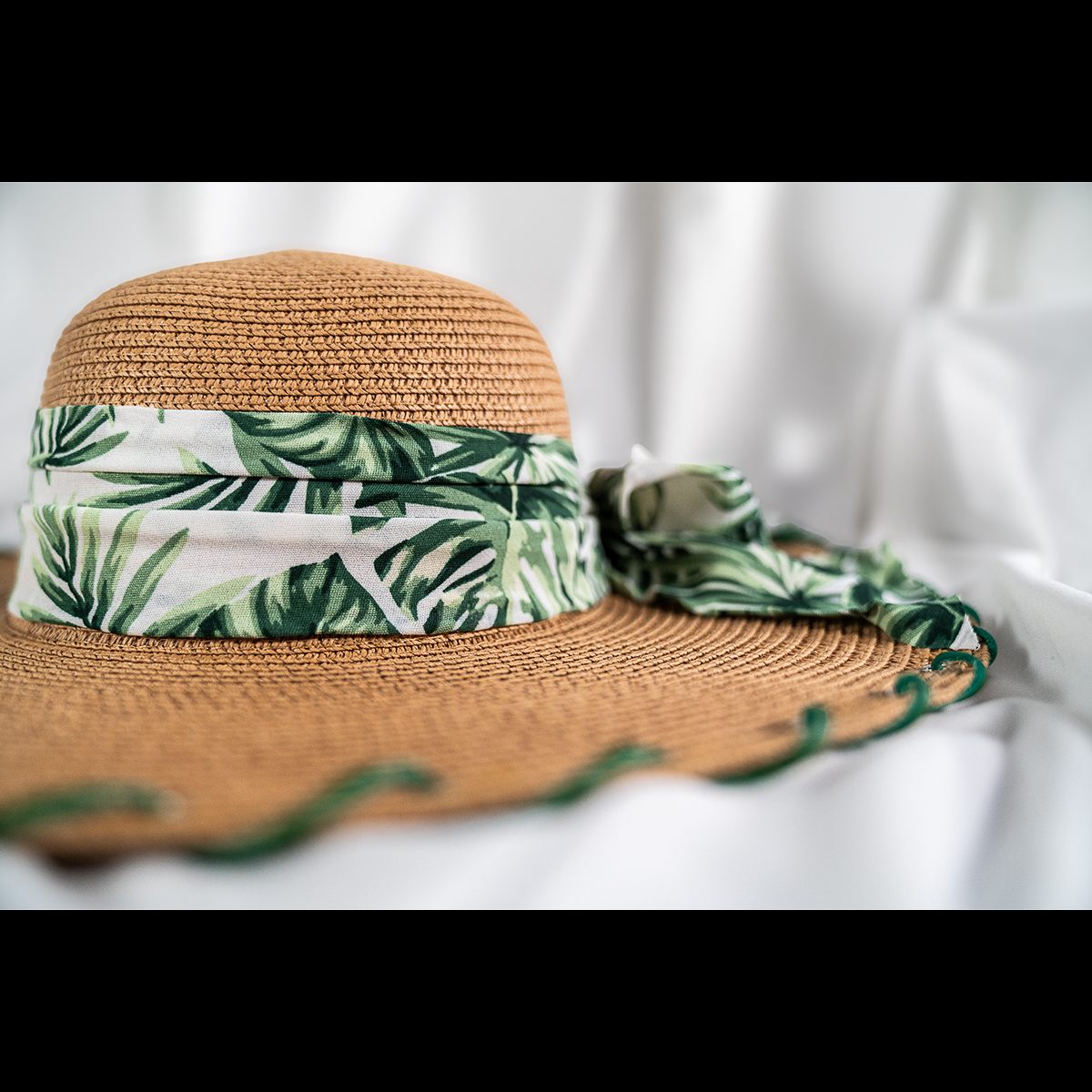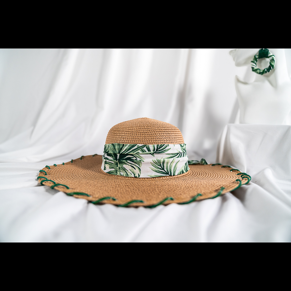 The brim is finished with hand-laced green detailing, creating subtle contrast and highlighting the craftsmanship behind the design. Lightweight and breathable, this piece offers comfortable sun coverage while elevating any casual, vacation, or outdoor look.