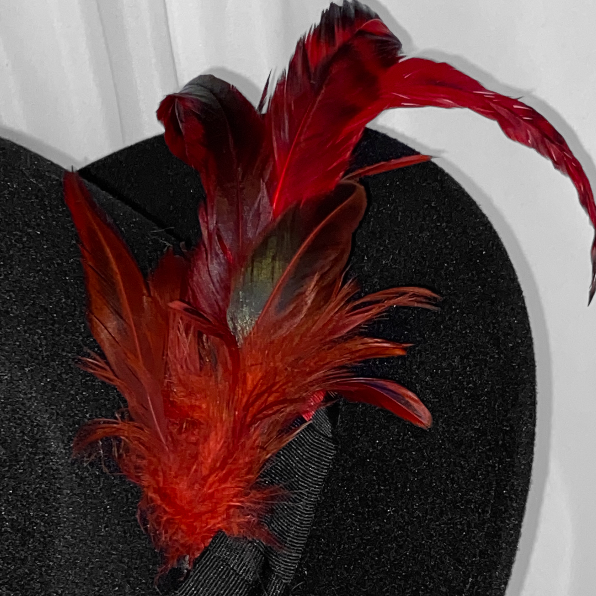 Feather embellishment in deep red tones